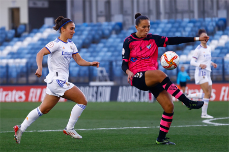 (59') Marca Esther el 1-0 al aprovechar un balón rechazado por el larguero tras un remate de la delantera madridista