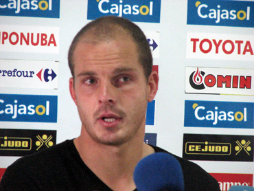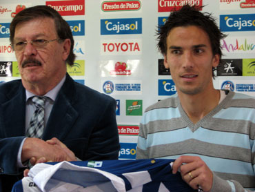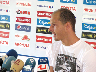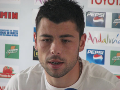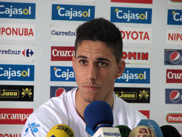 El extremo del Recreativo de Huelva Víctor Barroso declaró tras dar "muchas gracias" por la enhorabuena tra...
